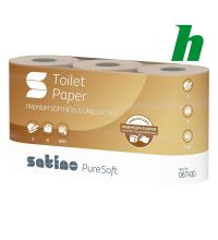 Satino PureSoft toiletpapier combineert duurzaamheid met comfort. 2-laags, 600 vel per rol, soft beige en gemaakt van 100% gerecycled karton. Zacht, huidvriendelijk en sterk absorberend. MT1-compatibel en bekroond met de Ecodesign Award en European Cleaning & Hygiene Award.